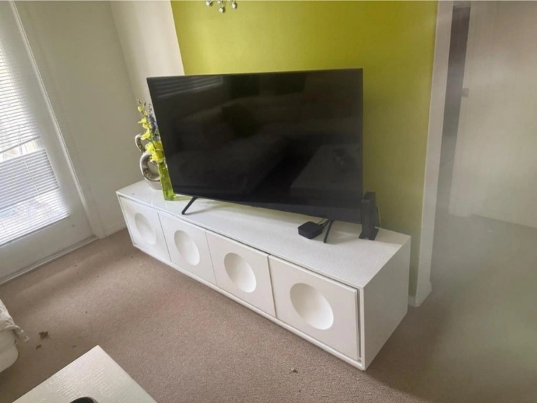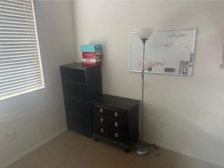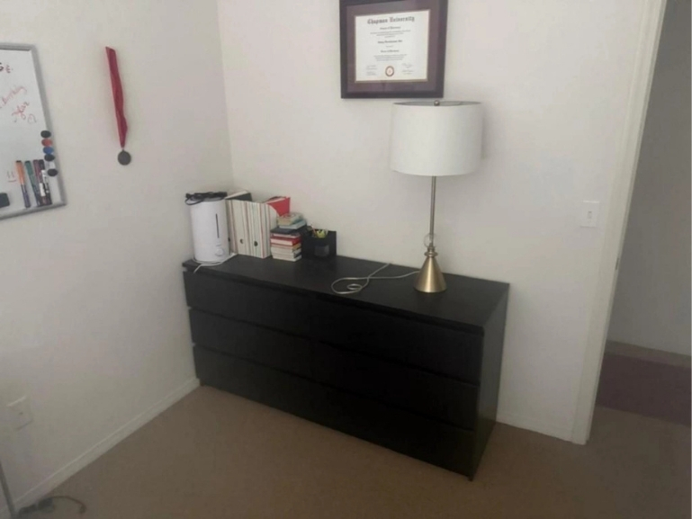 • Flat-screen TV with Roku, router, office desk setup