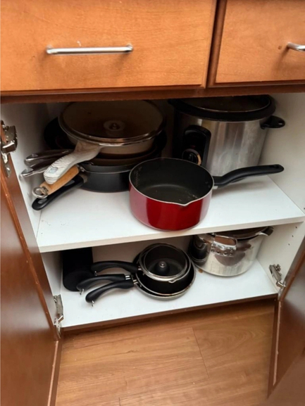 • Crockpot, pots and pans, Pyrex storage, dishware